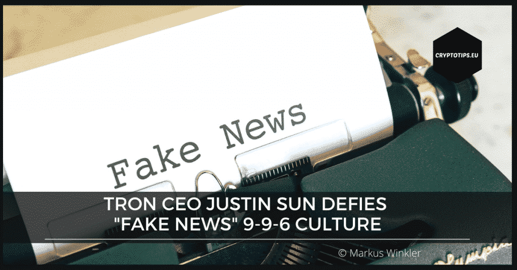 Tron CEO Justin Sun defies “fake news” 9-9-6 culture