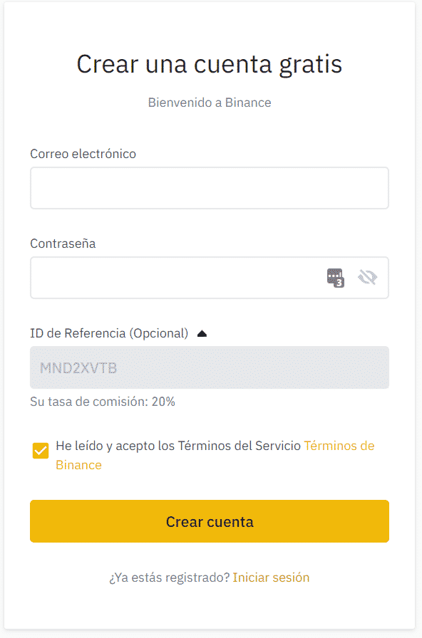 El código ID de Referencia Binance solo es válido al registrar una nueva cuenta. Si ya tienes una cuenta puedes considerar crear una nueva para ahorrar dinero extra en las tarifas.